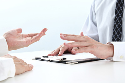 技工の予定確認や、歯科医師と補綴内容の打ち合せを行います。